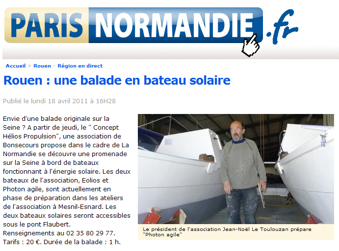 Depuis 1996, ce qui motive les passionnés de navigation et de technique de l'ssociation Concept Hélios Propulsion, basée à Bonsecours,